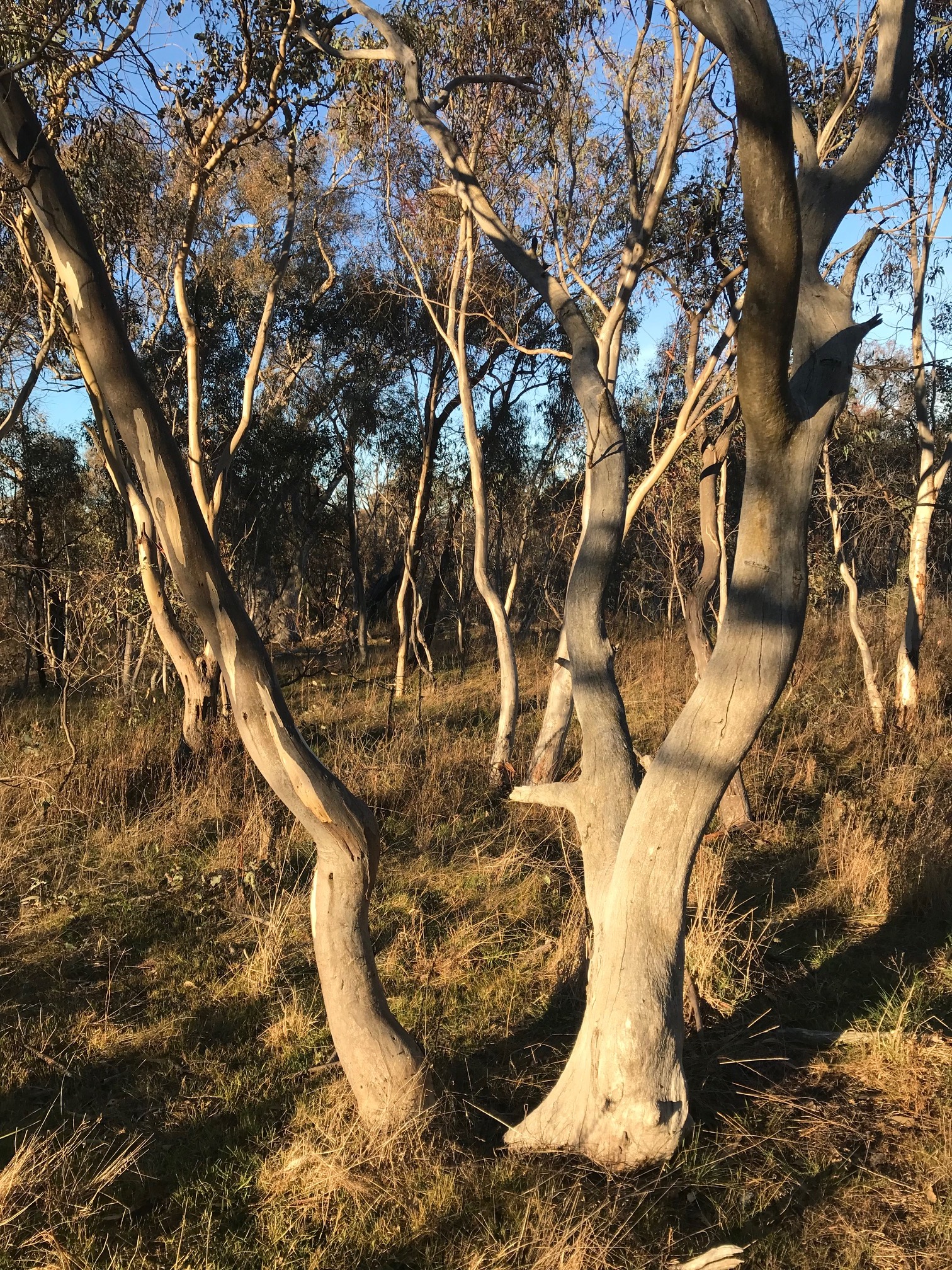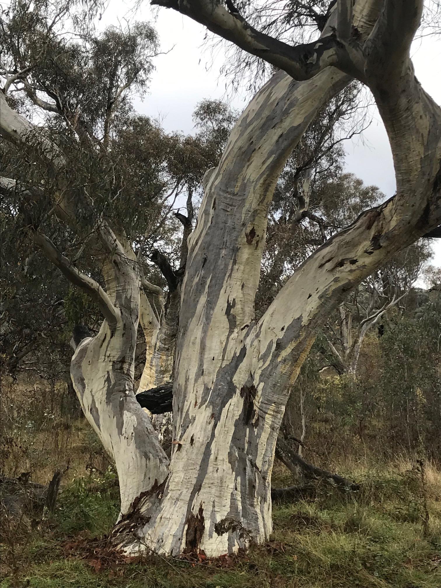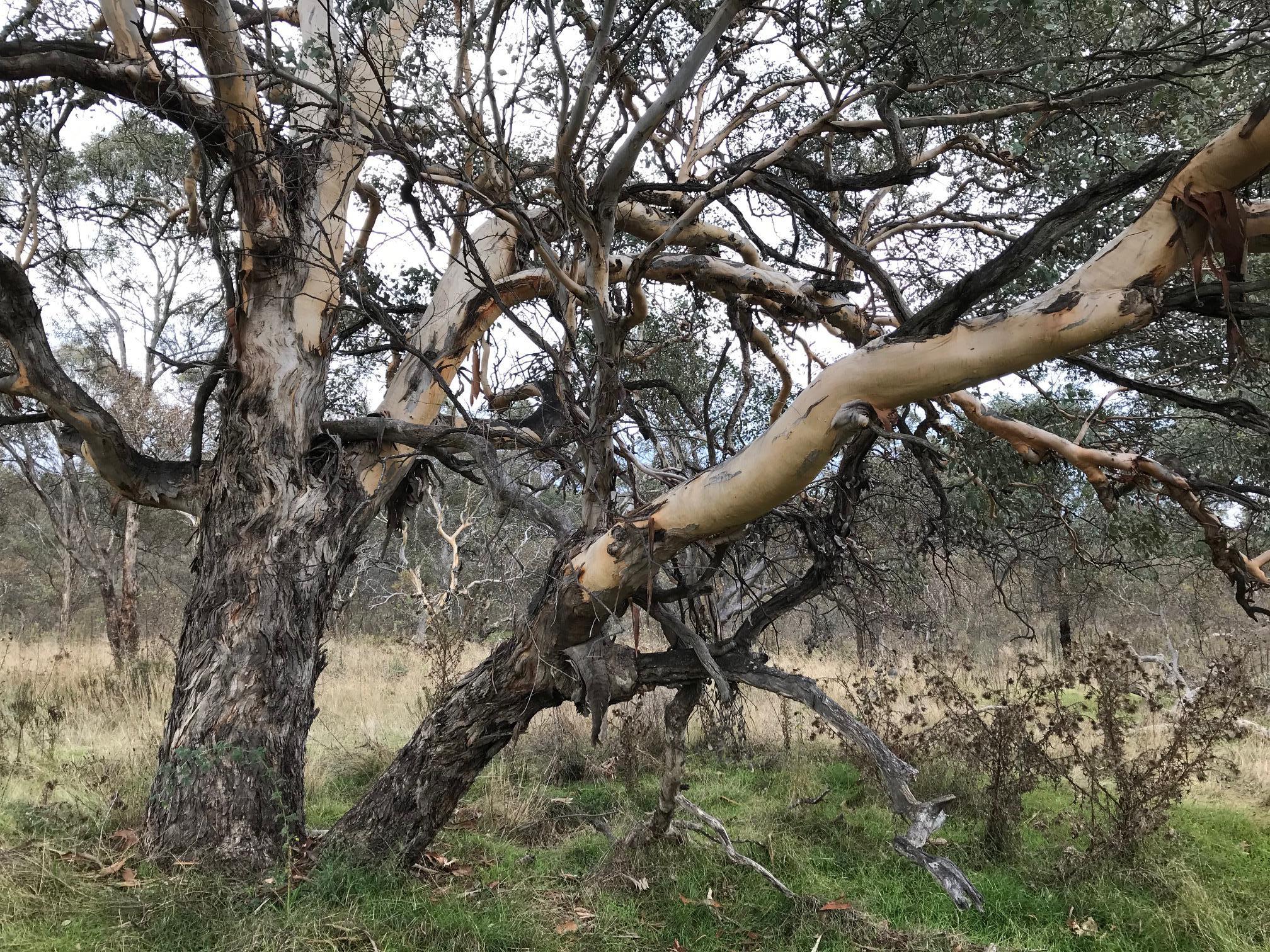 Trees in Callum Brae lNature Reserve look different from other trees. Yellow Box and Blakley's Red Gum are critically endangered.