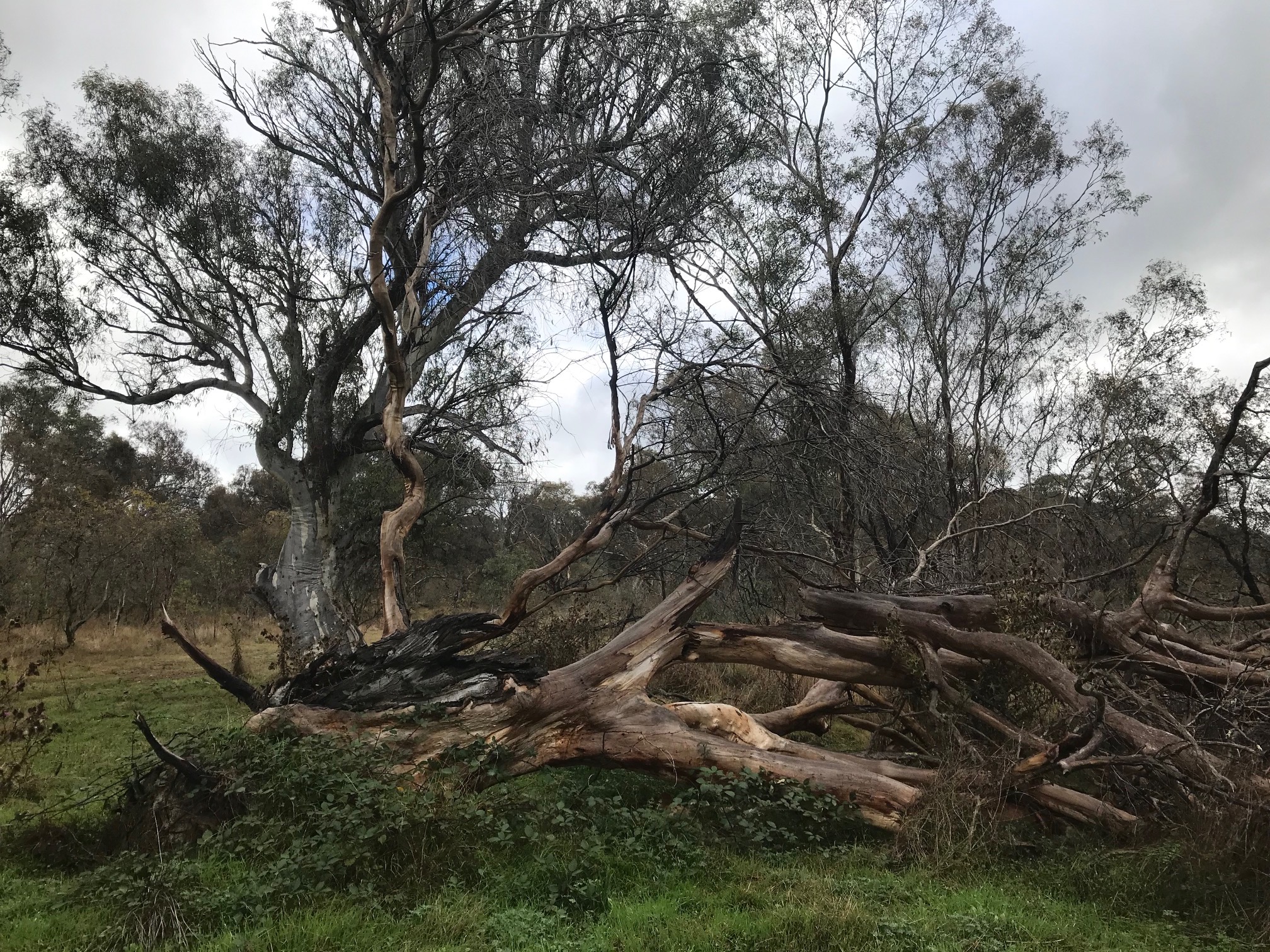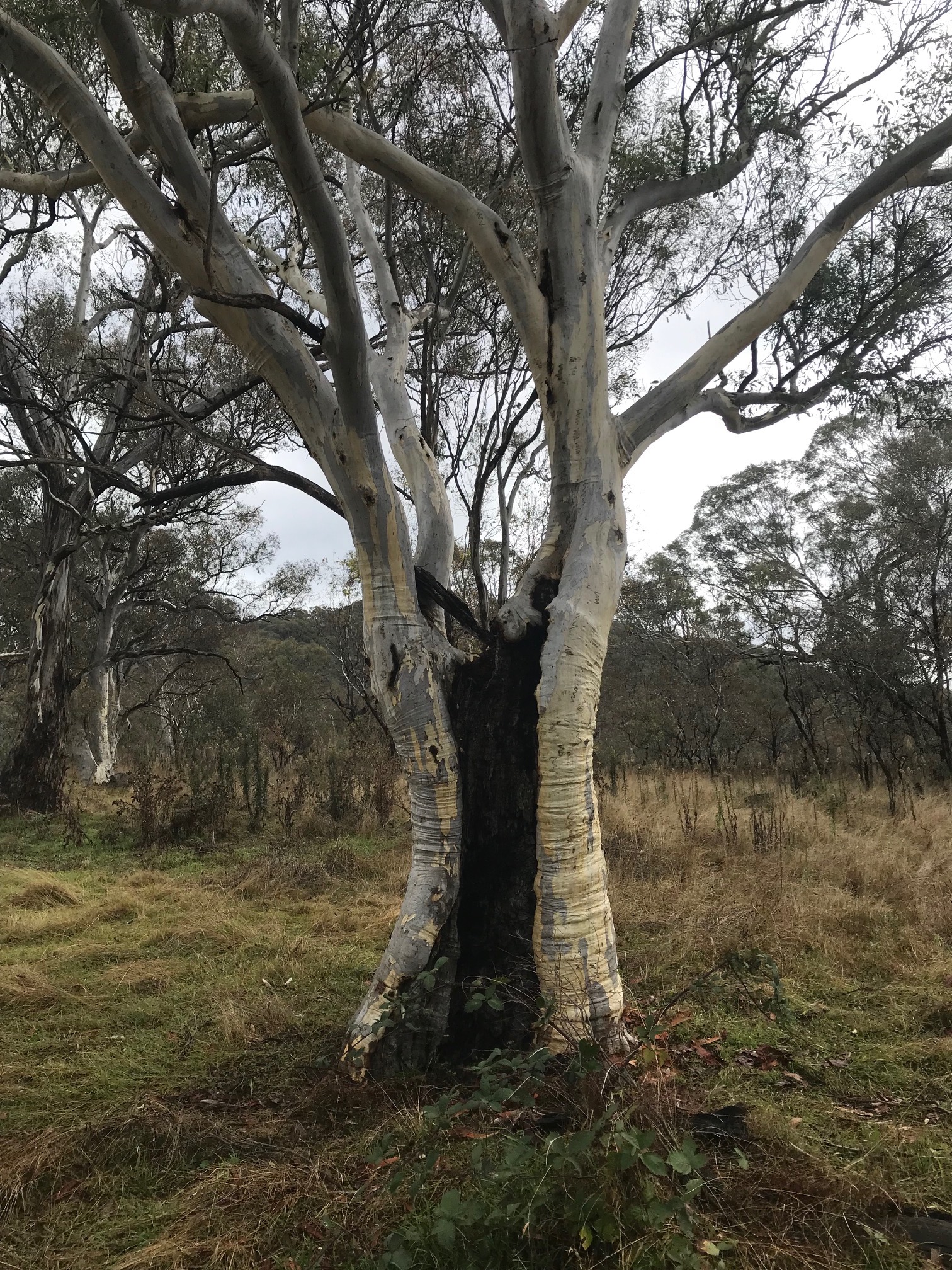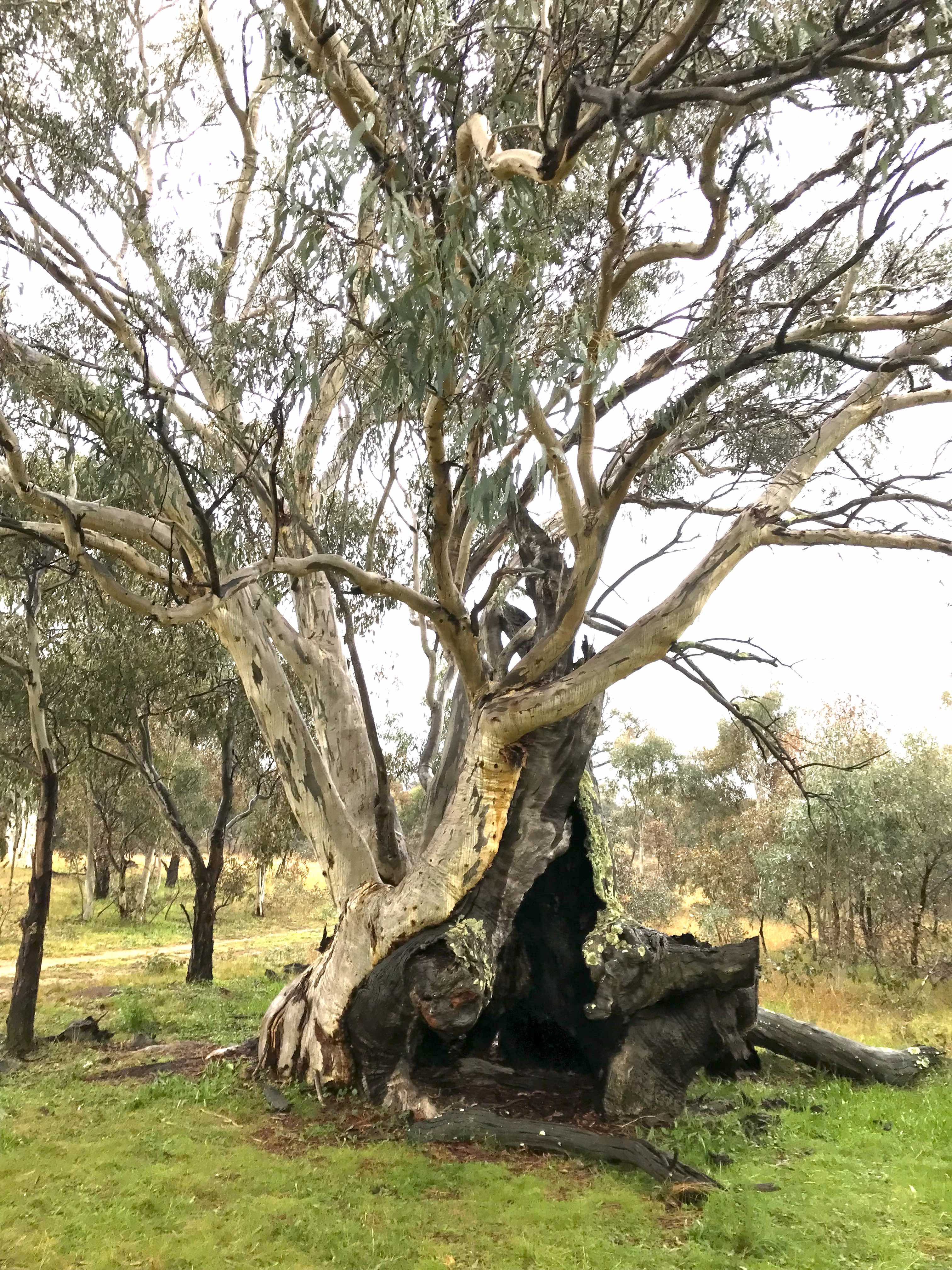 Trees in Callum Brae lNature Reserve look different from other trees. Yellow Box and Blakley's Red Gum are critically endangered.